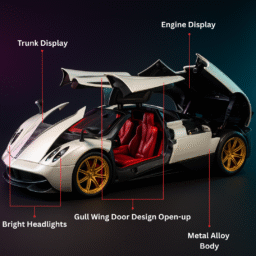 Unlike basic toy cars, this high-quality die-cast model offers more than sleek design. Equipped with a pull-back motor, lights, and music, this collectible is perfect for creating dynamic displays or entertaining young car lovers. Add motion and sound to your experience with features that mimic the energy of the real Pagani Huayra. The openable doors serve as an exciting touch, allowing a glimpse into the impeccable interior crafted for realism.